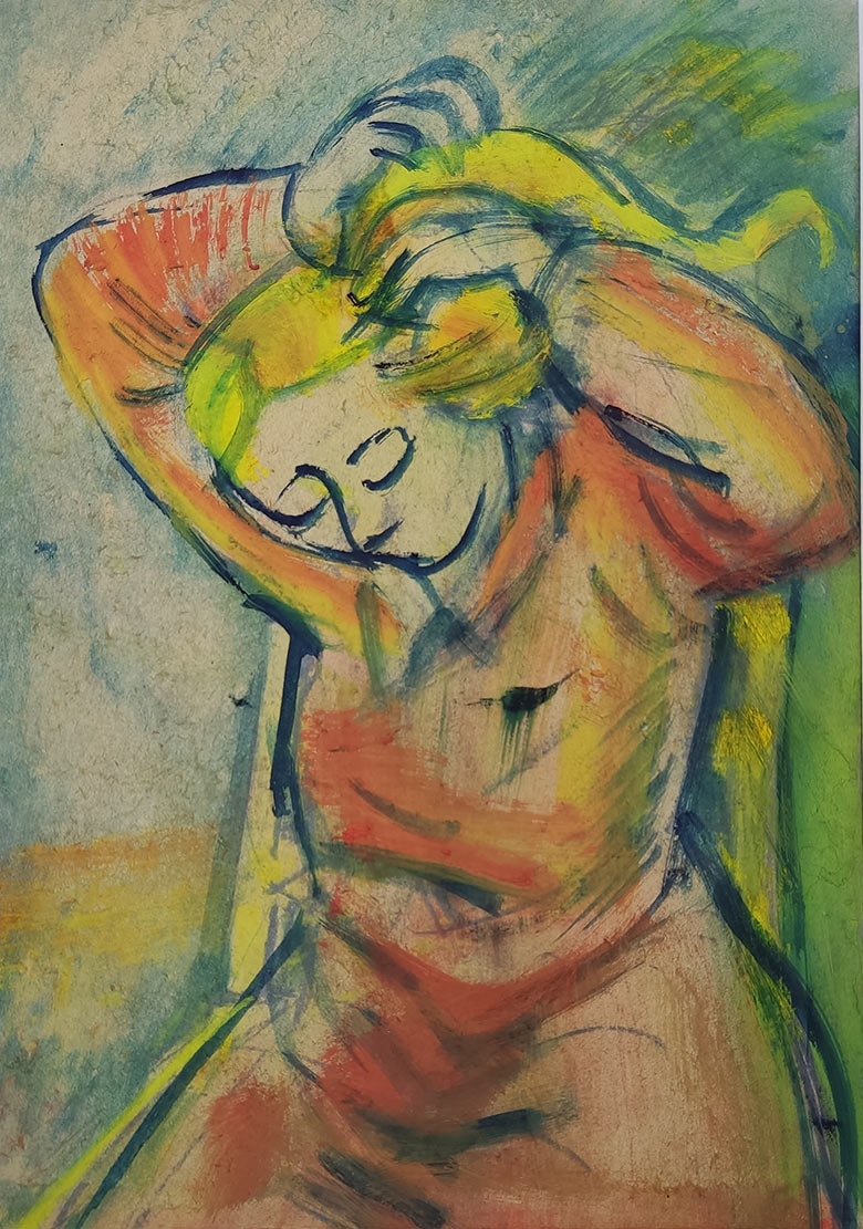 Josef Georg Miller, Haare machen, Farbstiftzeichnug mit Aquarell, 30 x 21 cm