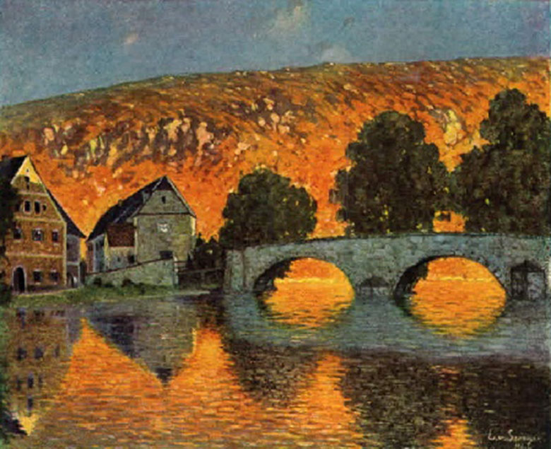 Lugwig von Senger gehört zu den Malern der Münchner Schule, die um die Jahrhundertwende weltberühmt war. Für die Touristen fertigte man serienmäßig kleine Ölbilder an, die man auch im Koffer transportieren konnte. Dieses Bild tauchte trägt den Titel "Landscape #34". Es tauchte bei Ebay in den USA auf und wurde von einem aufmerksamen Kallmünzer zurück gebracht.