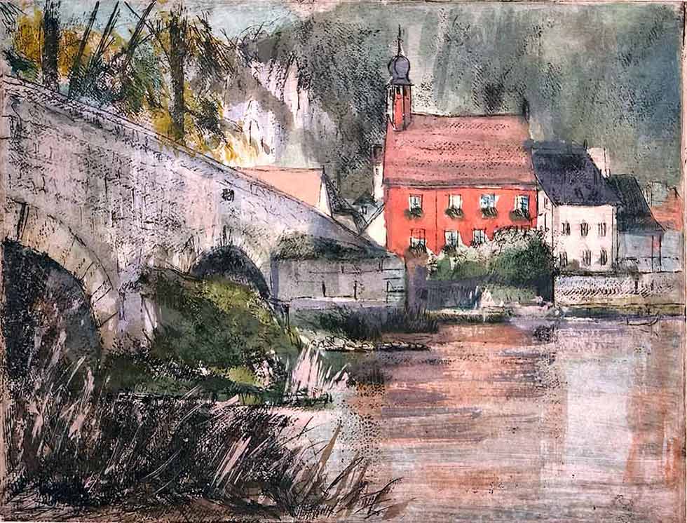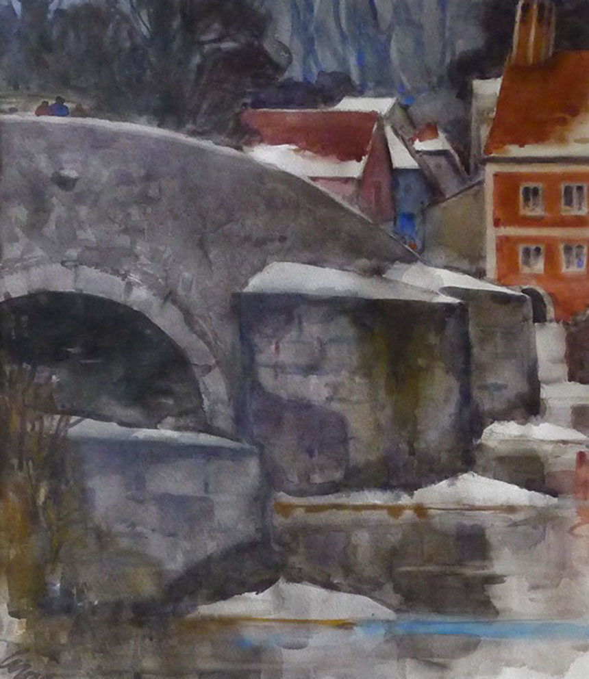 Günter Schmitz, Steinerne Brücke, Aquarell, 70 x 50 cm