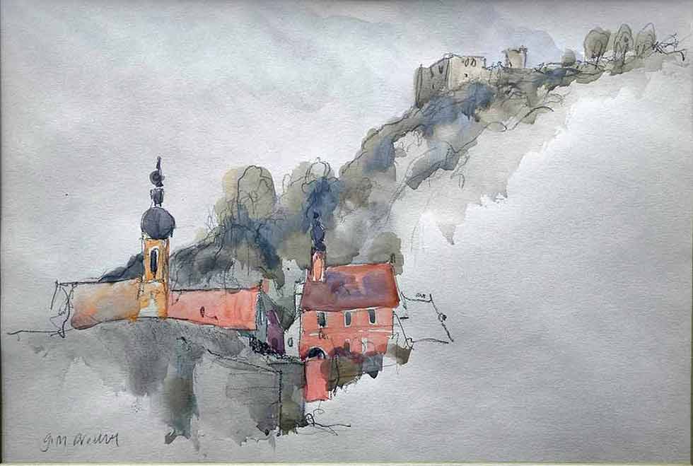 Gerhard Maria Precht. Kallmünz, Aquarell, 44 x 29 cm