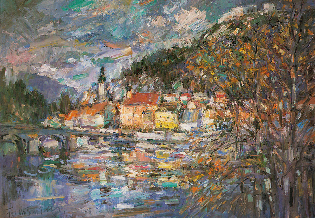 Fritz Wurmdobler, Kallmünz,1982, Acryl auf Malerplatte, ca. 80 x 100 cm