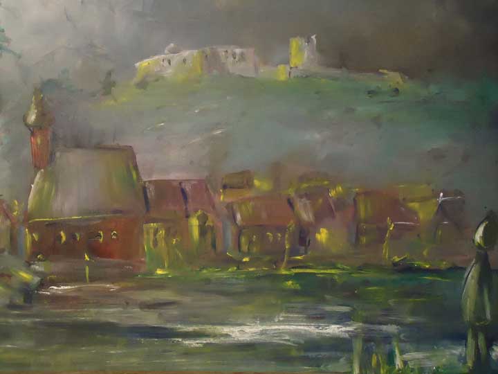 Danze Panele, "Kallmünz im Suff", Acryl auf Leinwand, 50 x 70 cm