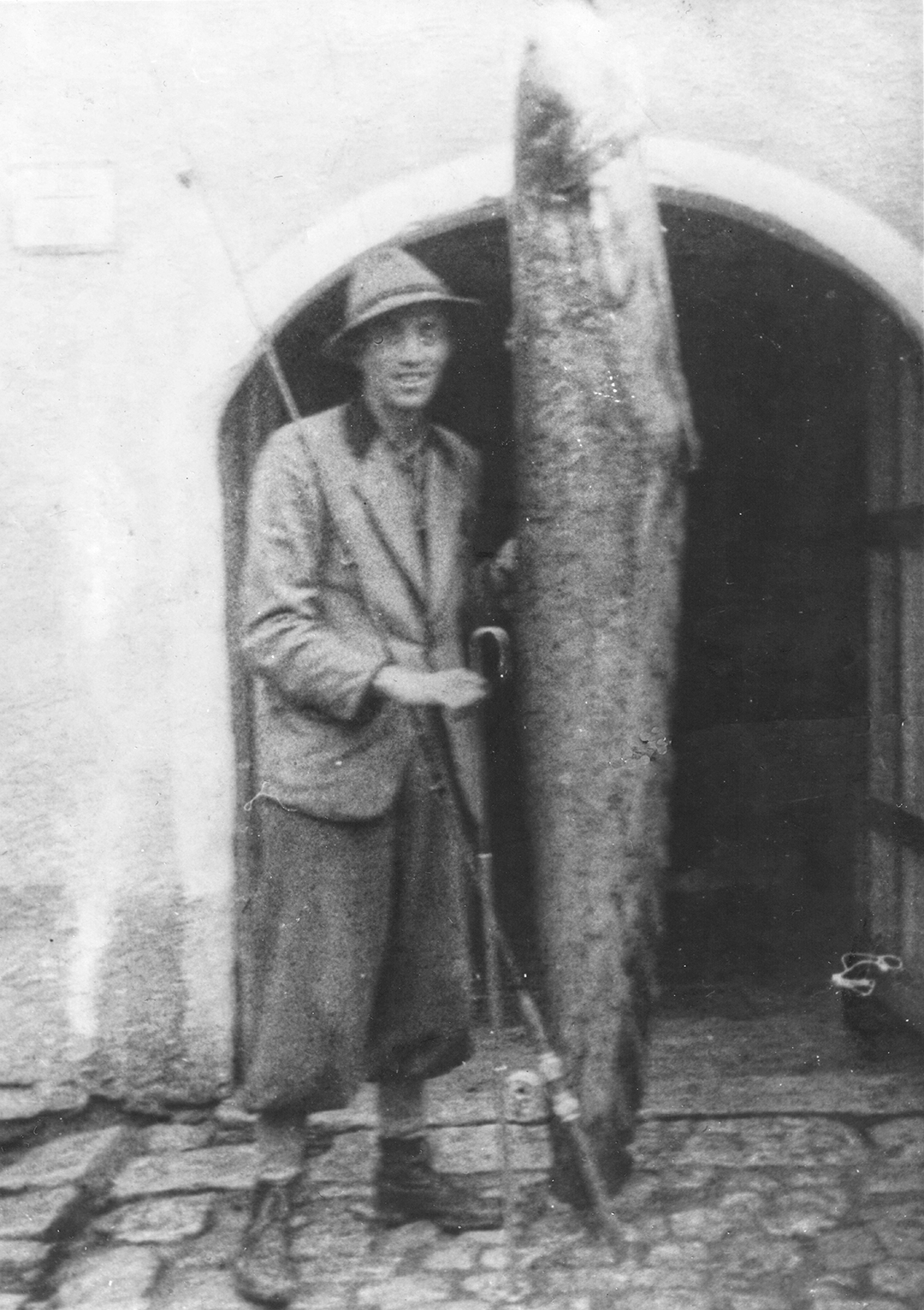 Foto: Bergverein Kallmünz e.V.,Erik Mailick mit einem Waller, 1939