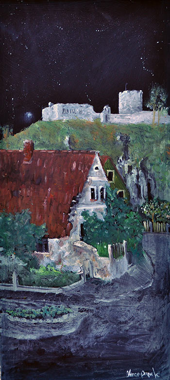 Danze Panele, Kallmünz bei Nacht, Acryl auf Fenster, 74 x 34,5 cm