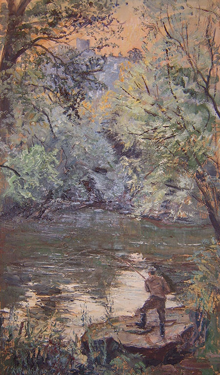 Erik Mailik, Angeln an der Naab, Öl auf Malerplatte,80 x 40 cm