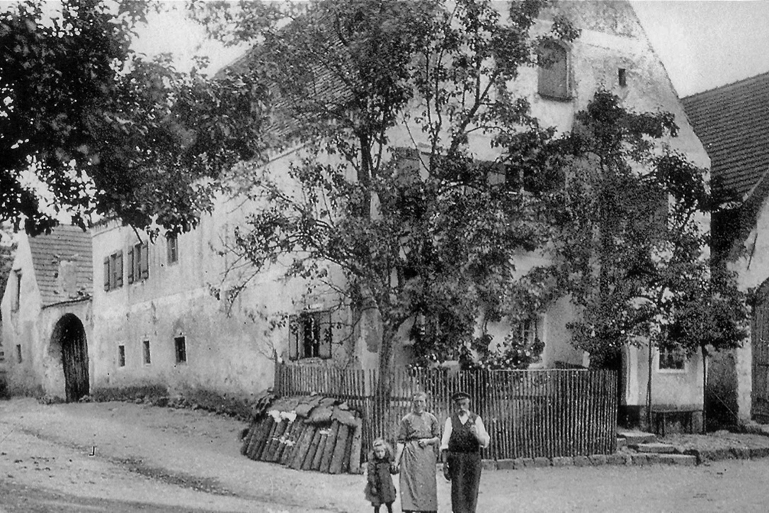 Die Postkarte von 1928 zeigt das Leben auf der Alten Regensburger Straße. Eine typische dörfliche Straßenszene: