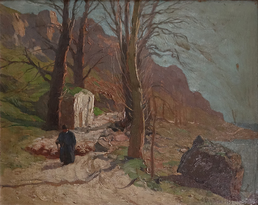 Albert Stagura, Schäfer auf dem Krachenhausener Weg, Öl auf Hartfaserplatte, 48,5 x 64 cm