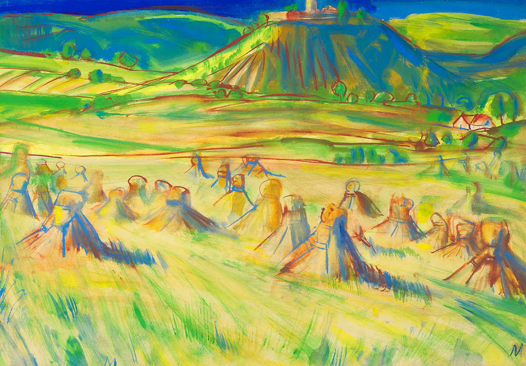 Josef Georg Miller, Kornmandl vor Kallmünz, Tempera, 52 x 74 cm