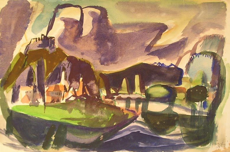 Willi Ulfig, Kallmünz, 1954, Aquarell, 48 x 67,5 ccm