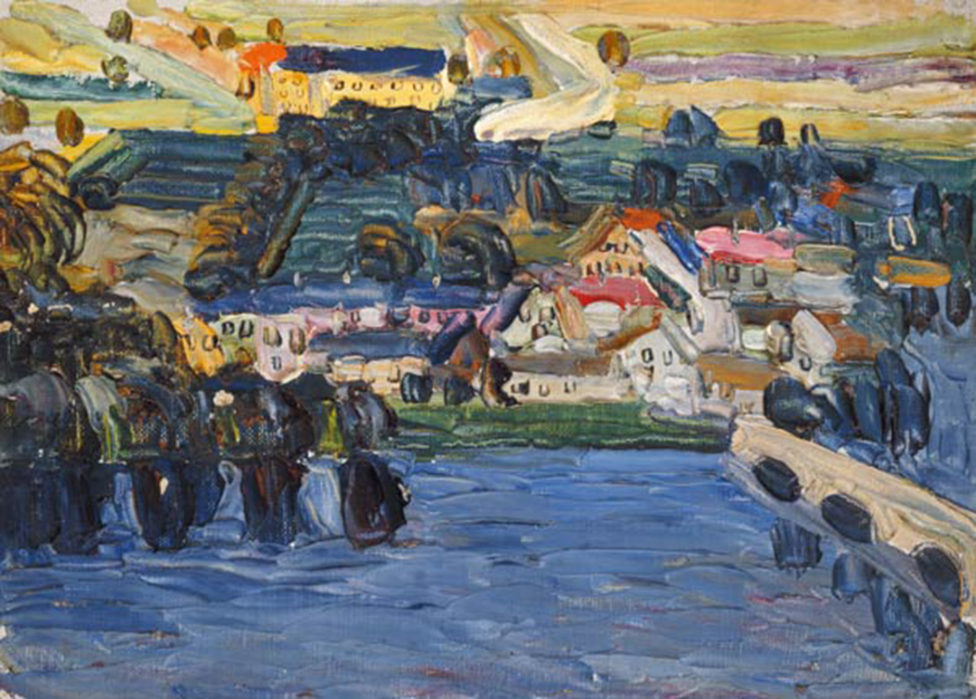 Wassily Kandinsky: Vilsgasse, Öl auf Malerpappe, 24 x 32 cm